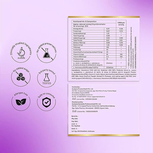 Designed for everyday wellness, this supplement pairs expertly selected probiotic strains with FOS prebiotic fibers, complementary vitamins, and digestive enzymes to amplify benefits. Whether you’re navigating slow digestion, irregularity, or post-meal discomfort, this formula helps restore digestive harmony without harsh stimulants or artificial additives. With the synergistic action of probiotics and ACTAZIN®’s whole-fruit botanical power, you get a balanced, gentle approach to supporting digestive health that fits seamlessly into your daily routine. With a well-balanced symbiosis of prebiotic and probiotic action, this supplement not only helps seed good bacteria but also feeds and supports them, making it more effective in maintaining gut flora balance. Whether you’re aiming to improve digestion, reduce discomfort after meals, or keep constipation at bay, Nutricult’s supplement is formulated to work holistically with your digestive system, delivering everyday support in an easy and natural way.